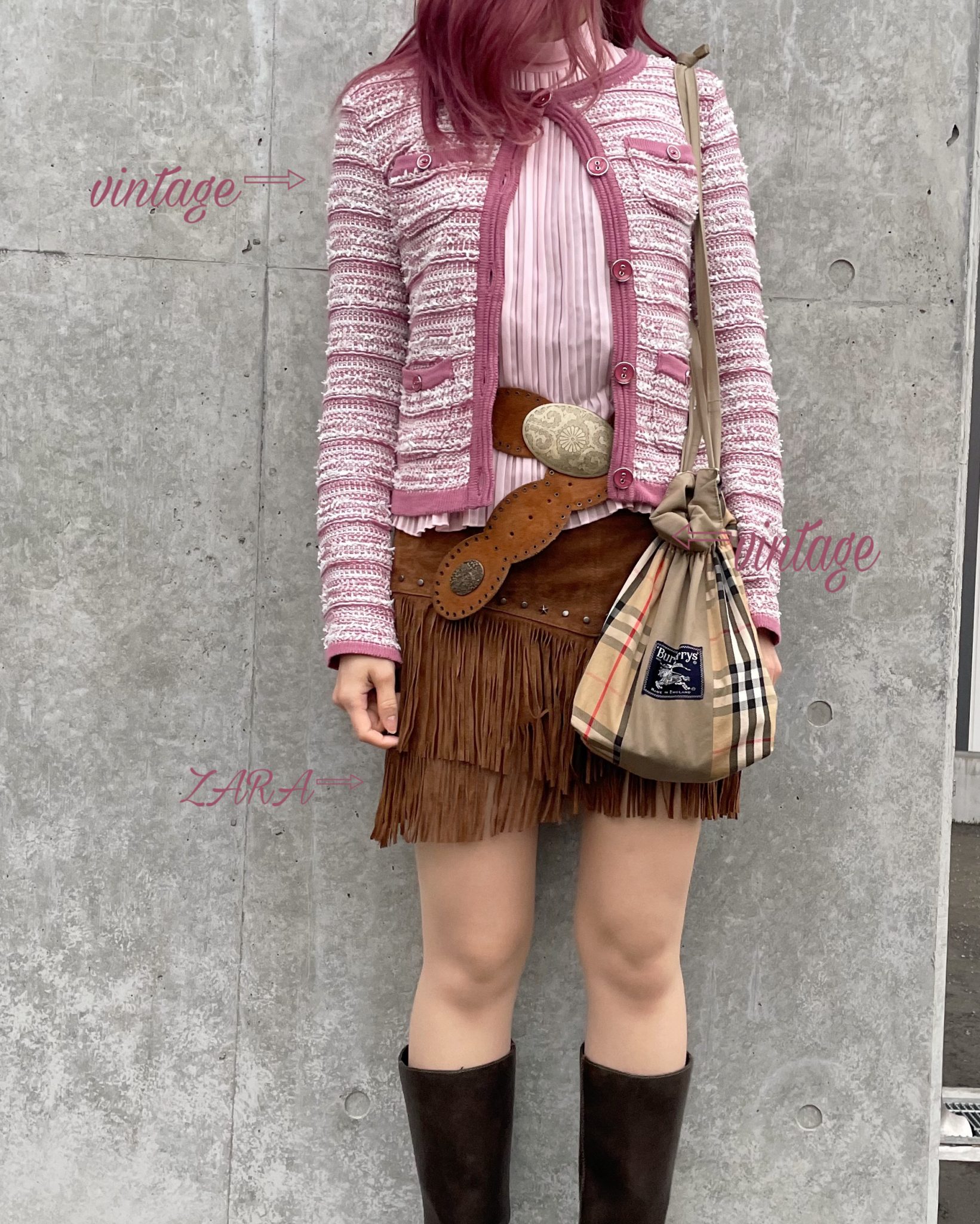 bagは以前古着屋さんで購入したBurberryのリメイクbag