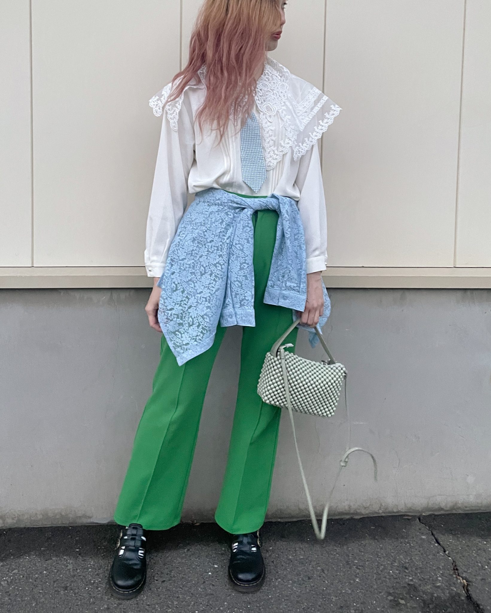サスペンダーとカバンで緑もいれました♪
