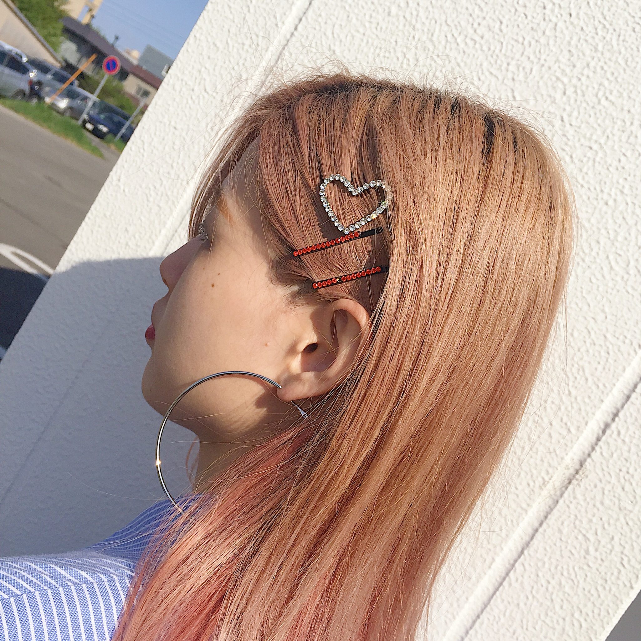 普段片方を耳にかけたヘアスタイルにすることが多いので、そこにピンをつけています!