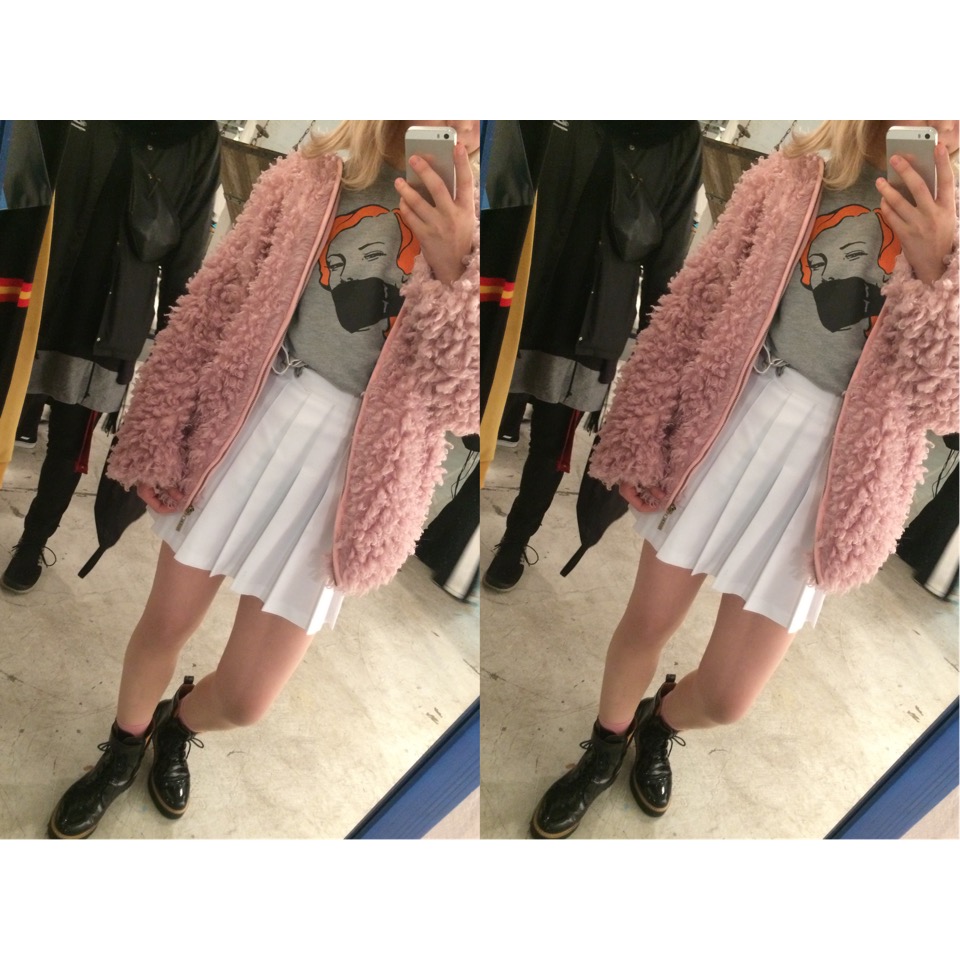 私はお店に入って30秒くらいでこのもこもこで可愛らしいピンクのコートに釘付け♡