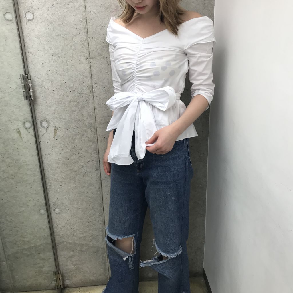 変形型ブラウスで華奢見せ♡#ootd4nylonjp