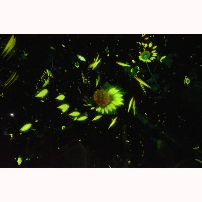 中に入ると無数の鯉や花が光で描かれています♡