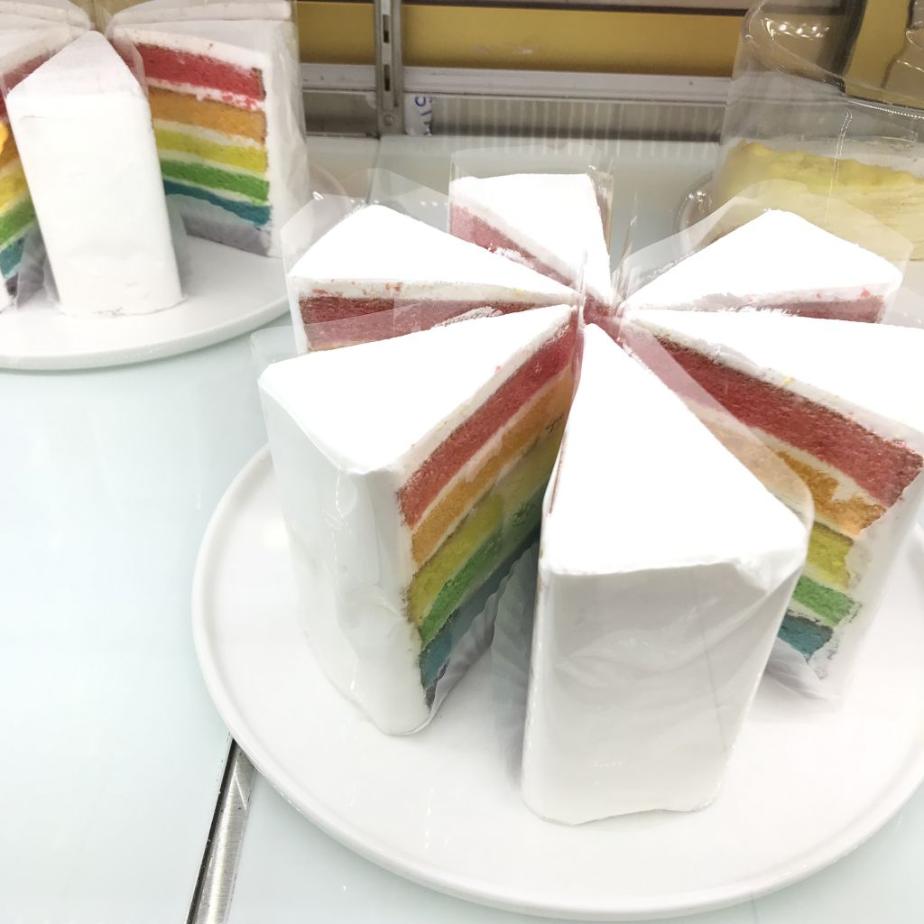レインボーのケーキも