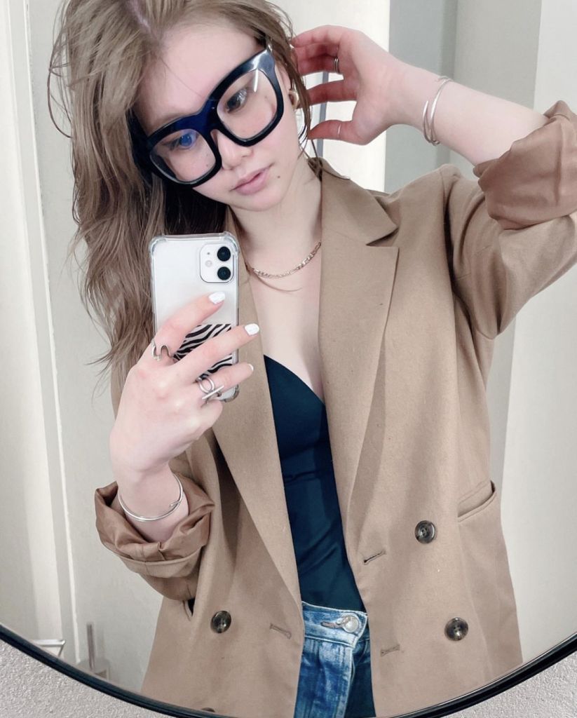 この日はメガネが黒なのでキャミも黒にして引き締める感じに。