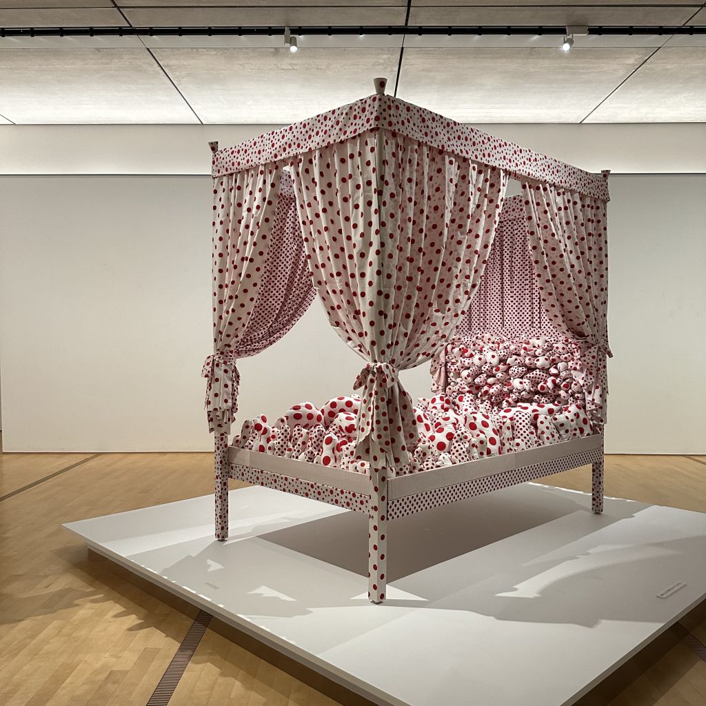 草間彌生さんの<ベッド、水玉強迫>は今回新しくポーラ美術館に収蔵された作品。