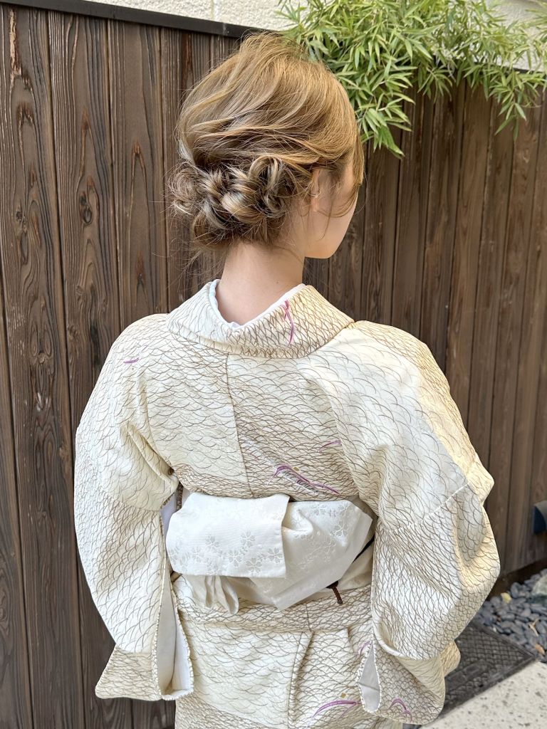 私は七五三や成人式で赤のお着物や振袖を着用したのと、前社の総会で白いお着物を着たことがあるので今回はベージュにしました♡