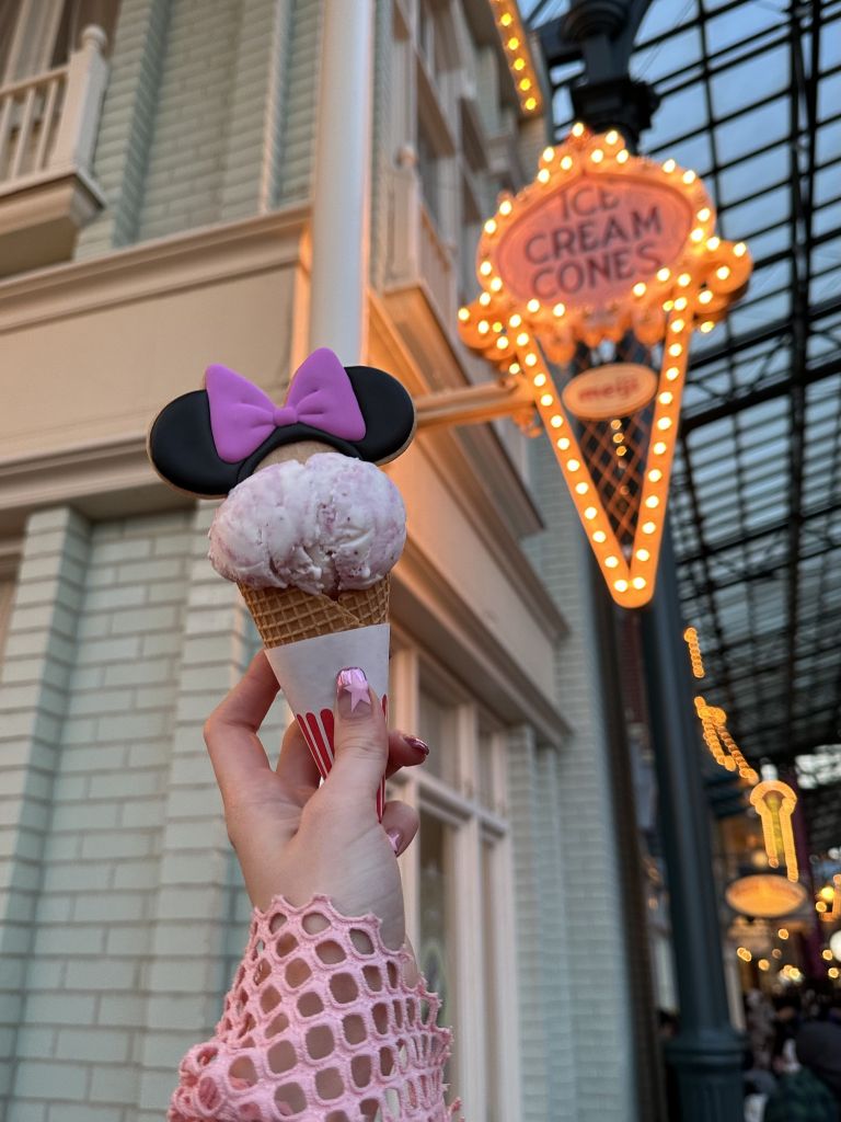ミニーマウスのカチューシャクッキーをアイスにON ‼︎ かわいい❤︎