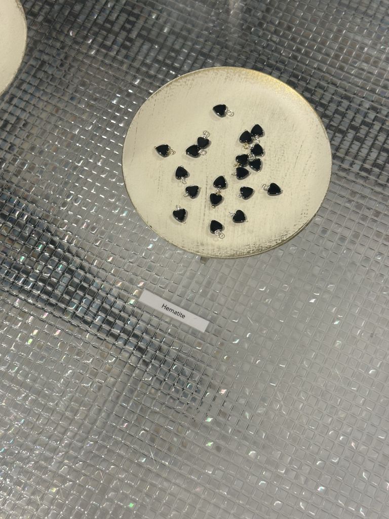 パーツはヘマタイトというパワーストーン。