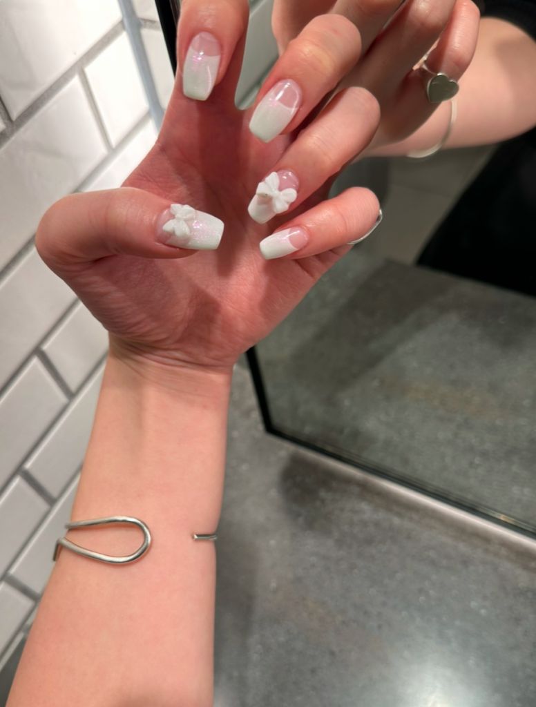 マットな真っ白のベースにきらっきらのパウダーを混ぜてのせてもらって、クロムっぽいパーツを♡