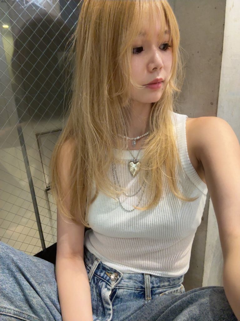 顔まわりにレイヤーとぷつっと重めのポイントを。