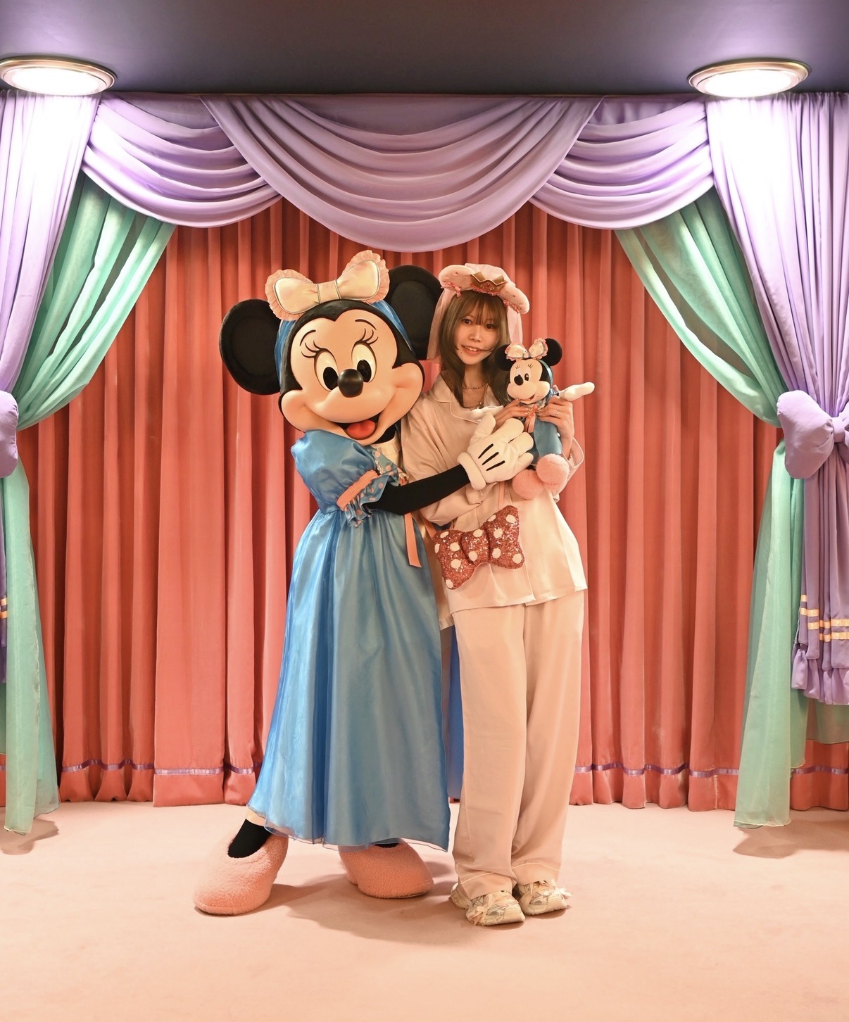 ふわっとしたパステルカラーのパジャマを着たミニーが本当に可愛すぎて、幸せな思い出がまたひとつ増えました。