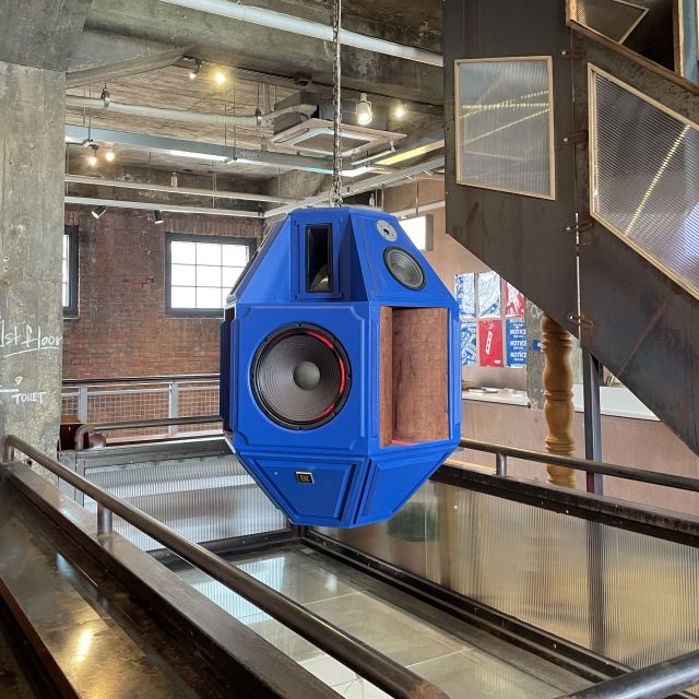2階に上がると見えたのはブルーのデッカいスピーカー