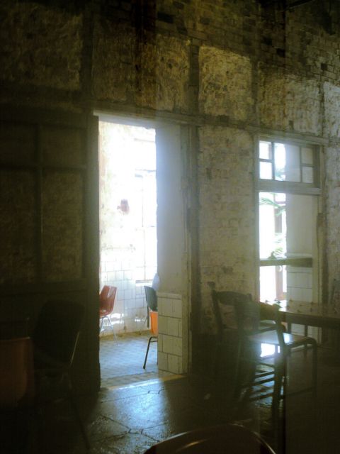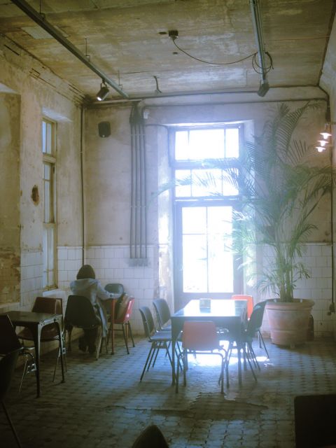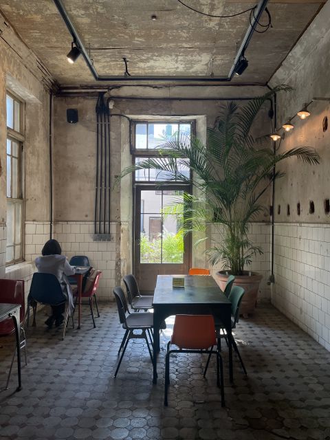 天井が高くて無機質な感じとテーブル同士が割と離れているので解放感があって、ものすごく居心地が良い