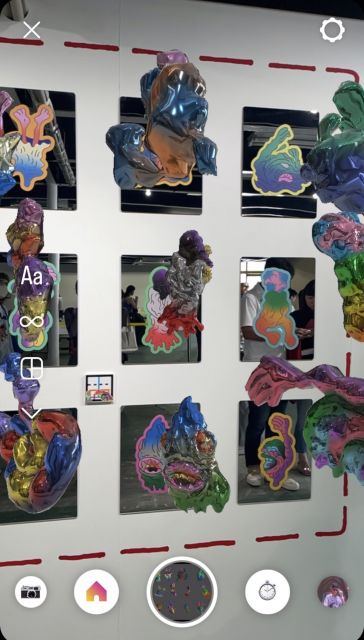 何やらみんなスマホをかざしている、、?と思ったらインスタの専用フィルターで読み取ると3Dが浮かび上がってくるという仕組み!