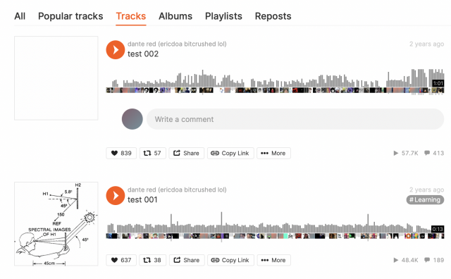 数ヶ月音沙汰がなかったSound Cloudのdante redのページにtest 001, test 002という楽曲がアップロードされたのです