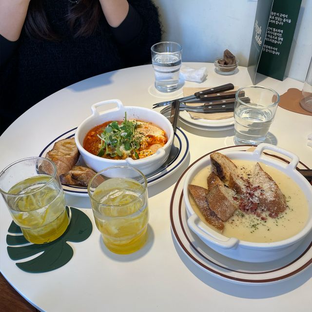 一番人気はエッグインヘルという(写真右側のもの)卵とアラビアータとバゲットのお料理