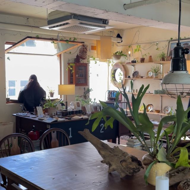 田浦エリアのひっそりとした建物の2階にある、革工房が併設されたカフェ