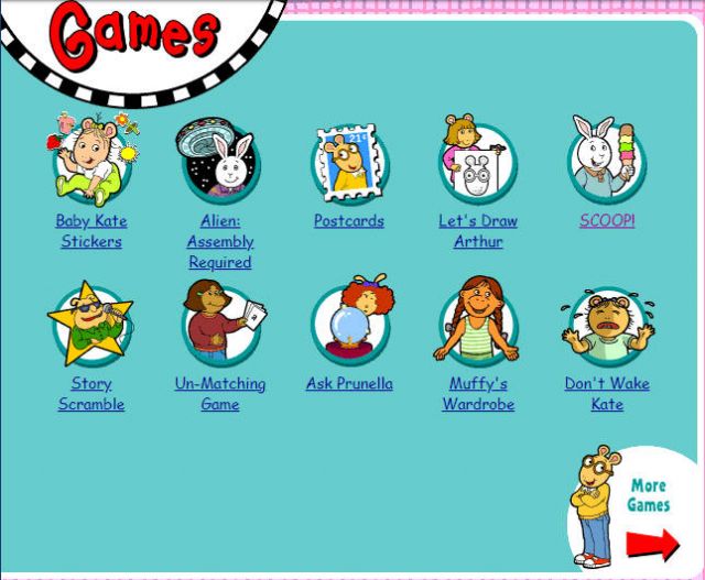 放送されているアニメのゲームができるのですが、特にお気に入りはArthurというアニメのゲームでした