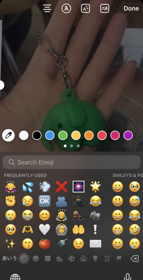 ③絵文字欄を右にスライドすると追加したステッカー一覧があるので好きなものを選ぶ