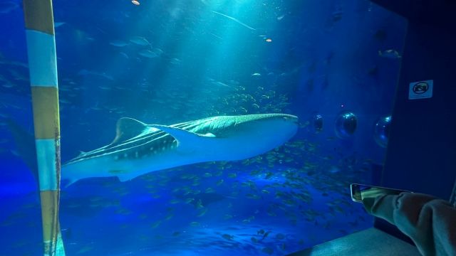 館内入ってすぐに、ジンベイザメの水槽へ