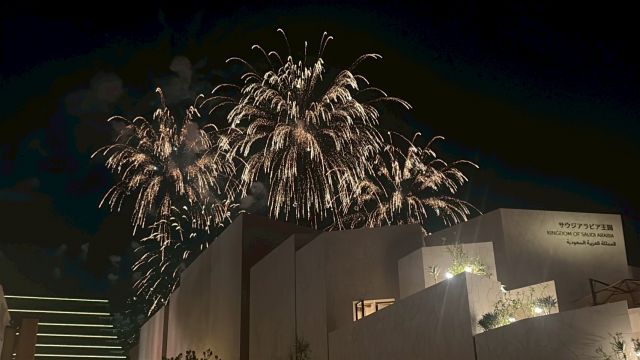 サウジを出た時にちょうど見れた花火!