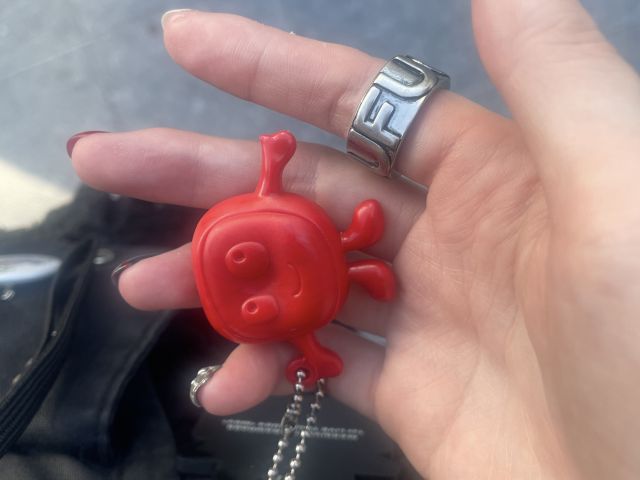 ペットボトルのキャップなどの再利用された素材でできたキーホルダー