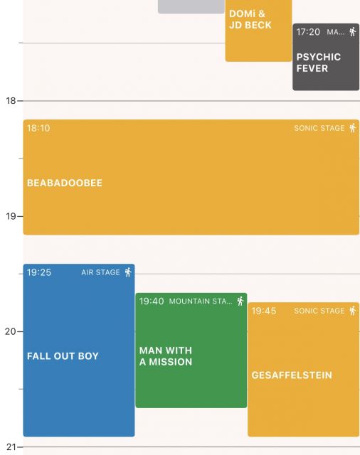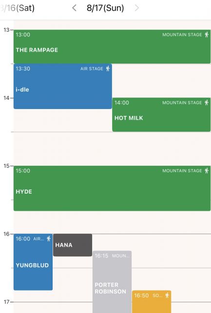 ステージの移動距離とか何も考えずにとにかくみたい人を詰め込んだ私のタイムテーブルはこんな感じ
