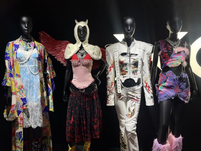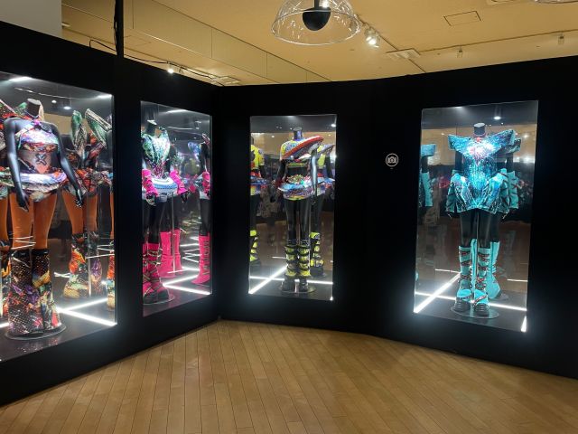 ツアー中に撮影されたパネル写真や、実際にステージで着用された衣装や映像が展示されていました