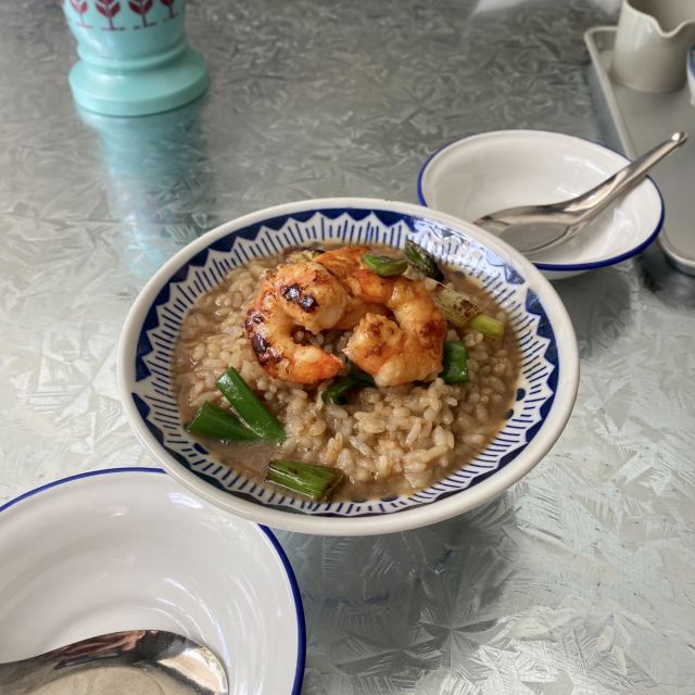 スープ的なものがかかっているご飯で海老は3尾も乗っています