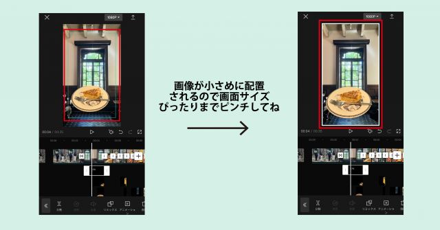 この時のポイントは絶対に元の画像を9:16の画面サイズにクロップしておくこと!