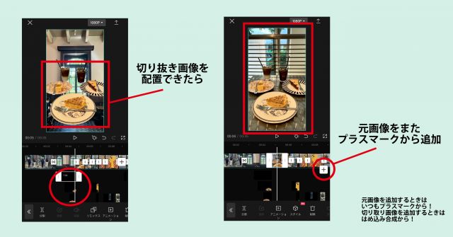 切り抜き画像を配置できたら切り抜かれていない画像をプラスマークから追加