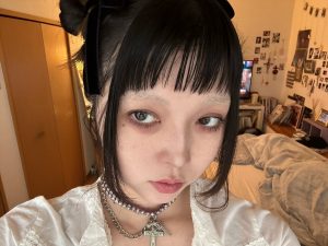 この日のメイクのポイントは久しぶりに上まつ毛にマスカラを塗ってみたことですね、本人しか違いが分かりませんがそれで良いのです。