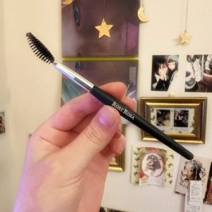 ROSY ROSAのまつ毛コームを使って、まつ毛を丁寧にとかします。まつ毛の角度も整えます。