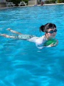 右足麻痺など気にもならないくらい華麗に泳ぎました。(浮き輪あり)