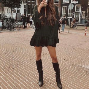 今年のトレンドな膝下丈のブーツもバッチリ!