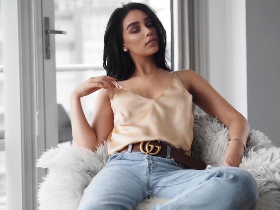 シルクのキャミソールなので品よく見えますね!