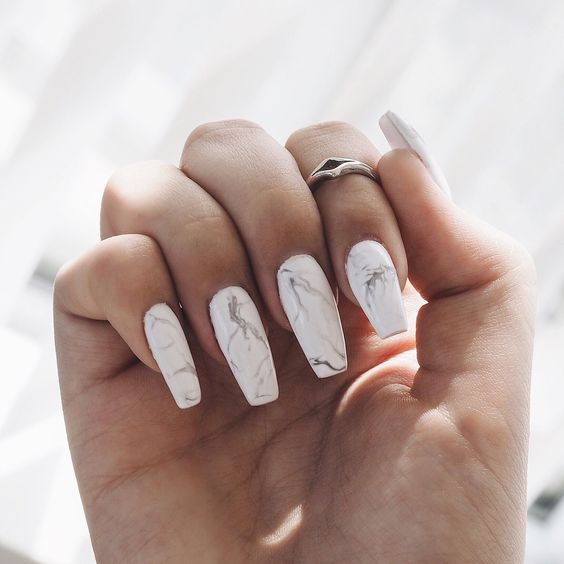 ホワイトマーブルで洗練されて見えます。