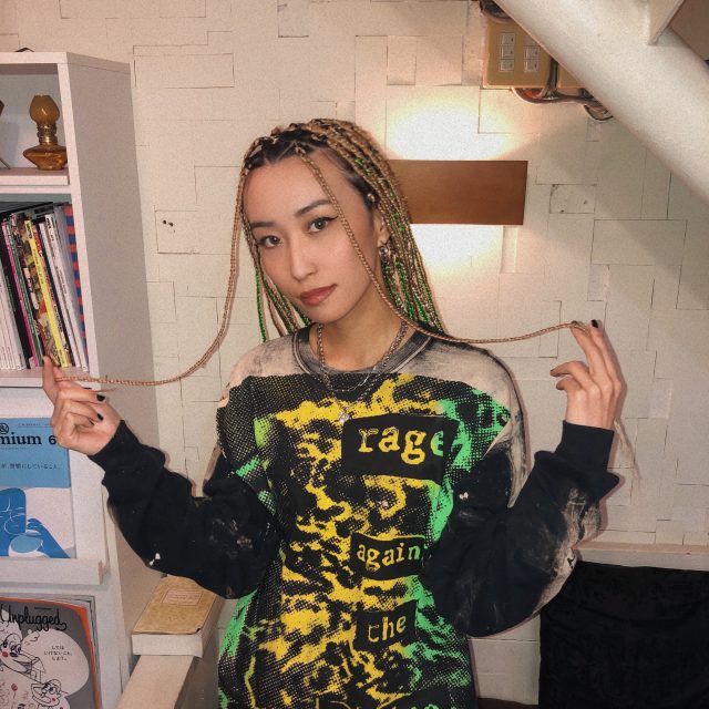 今回は、地毛に馴染むようにブロンドと明るいブラウンを混ぜてもらいつつ、ネオングリーンを追加!