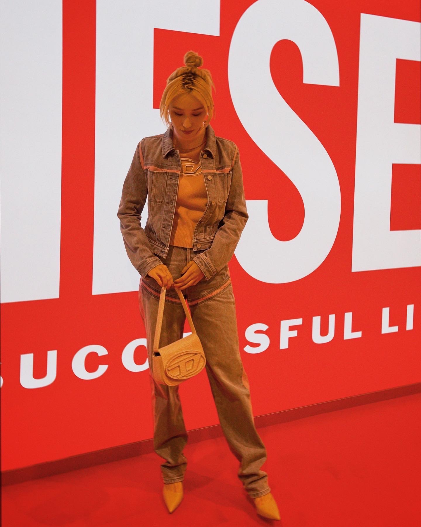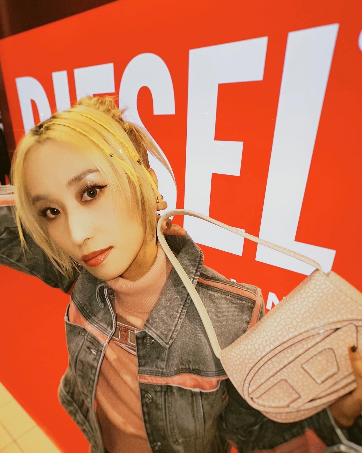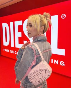 普段、自分ではなかなかこのベビーピンクのお洋服を選ぶことがないので、見慣れなくて不思議な新鮮な感覚でした!が、ディーゼルさんのデニムのセットアップは可愛らしくなりすぎず、抵抗なく着れました☆彡