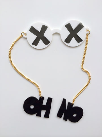 まるでイヤリングをしているかのように”OH NO”って文字が