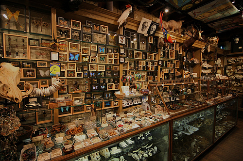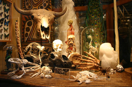 剥製や動物の骨、骸骨、標本、人間の骨(頭蓋骨の種類が豊富)なんかが売っています