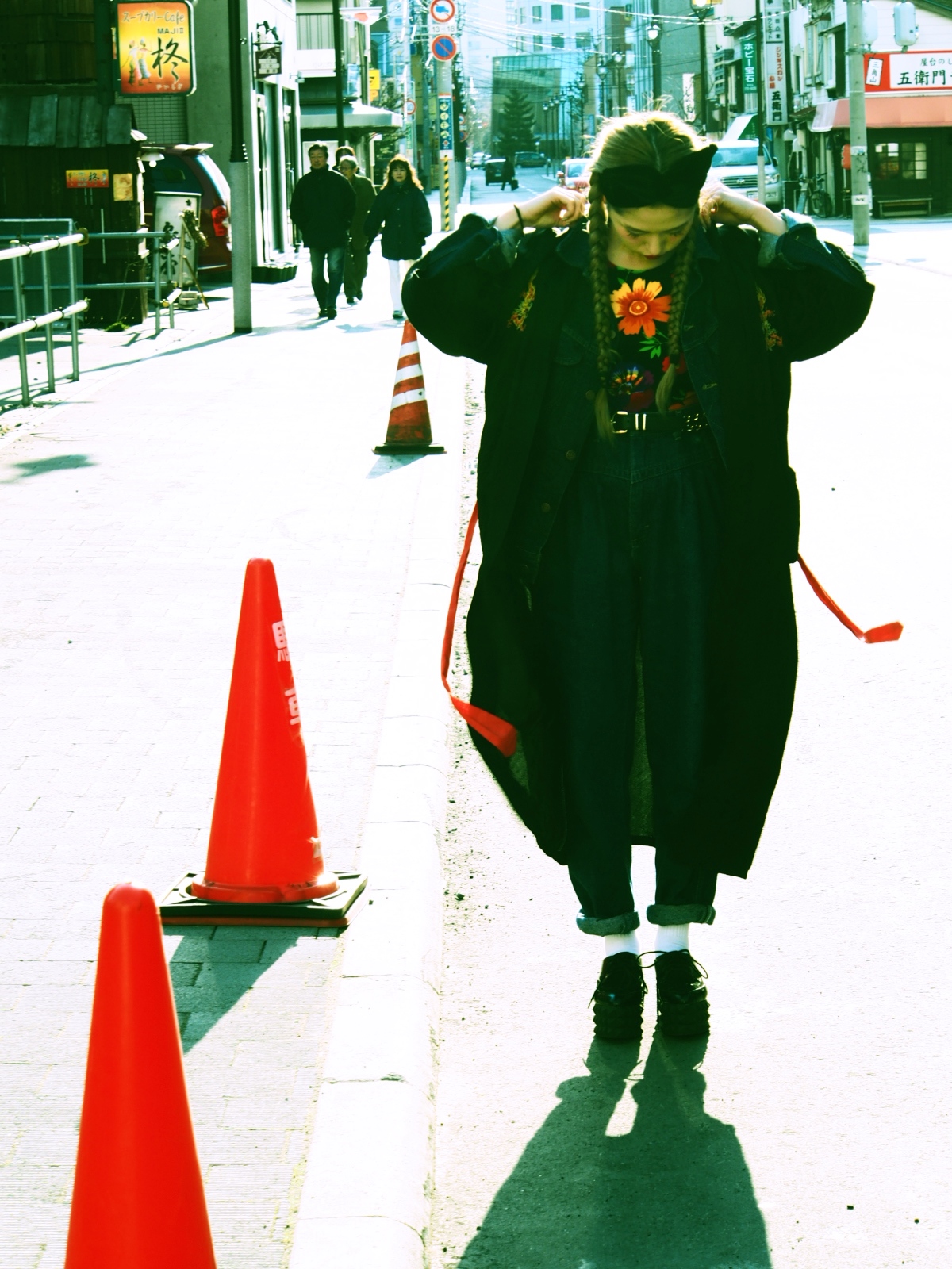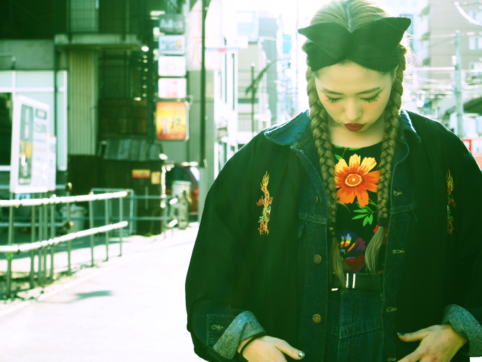 重くなりすぎないように、デニムと花柄で合わせたよ