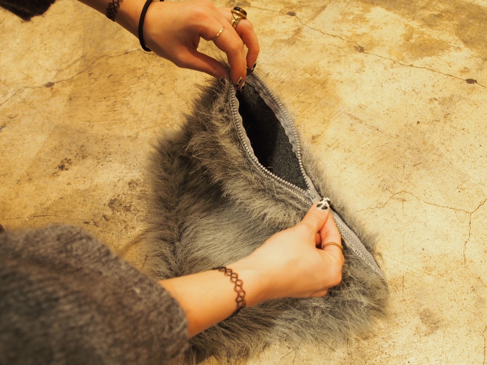 フェイクファーとファスナー