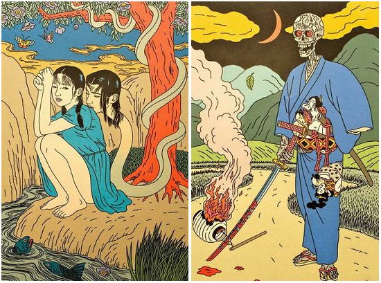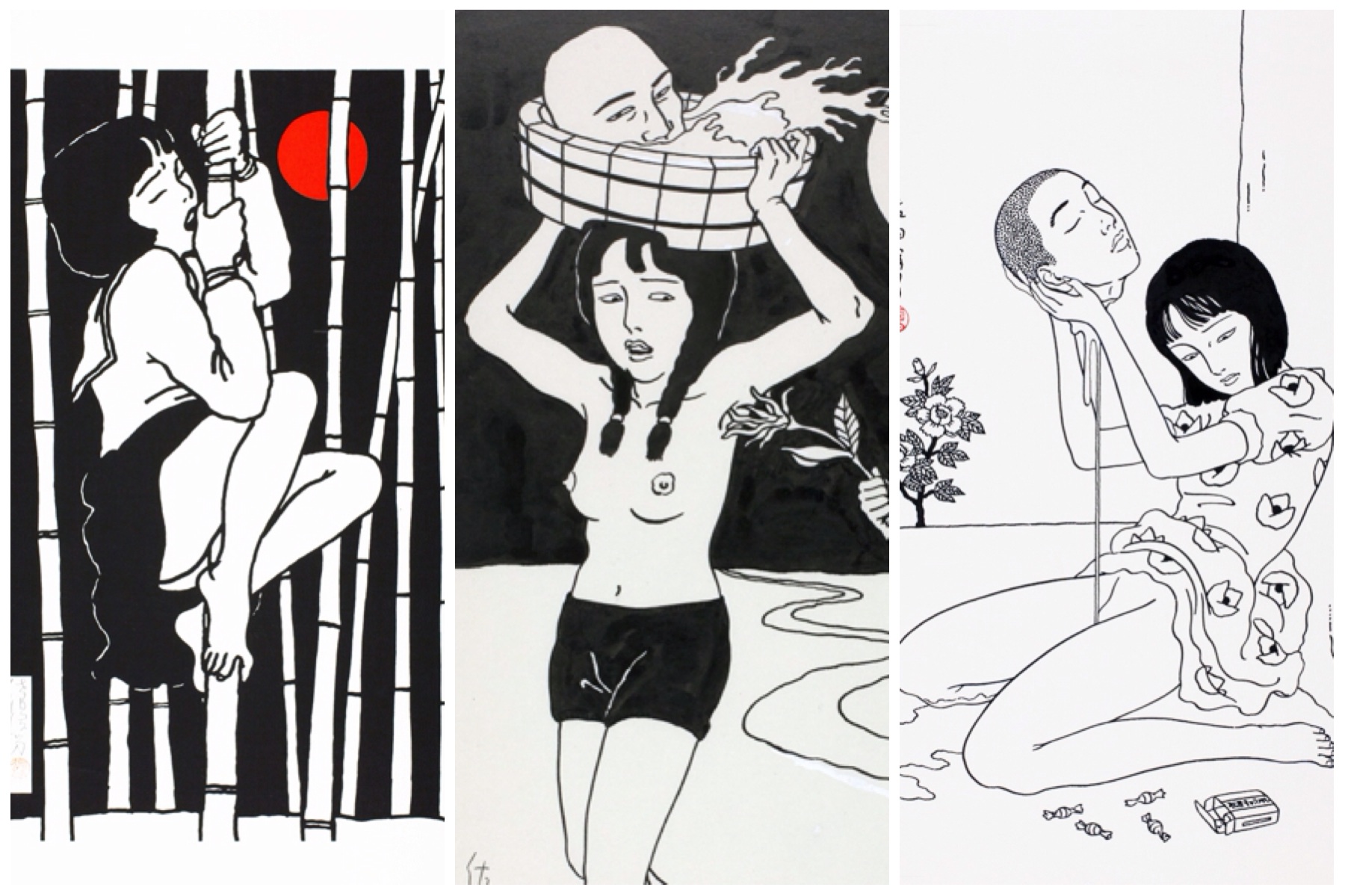 独特のタッチと浮世絵や春画を彷彿させるような作風で