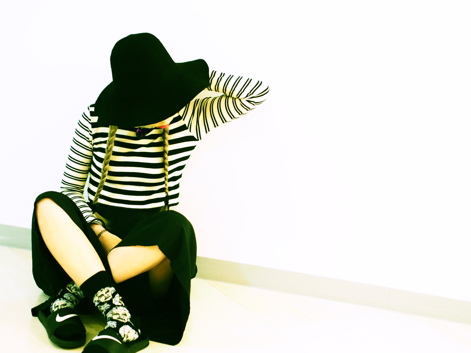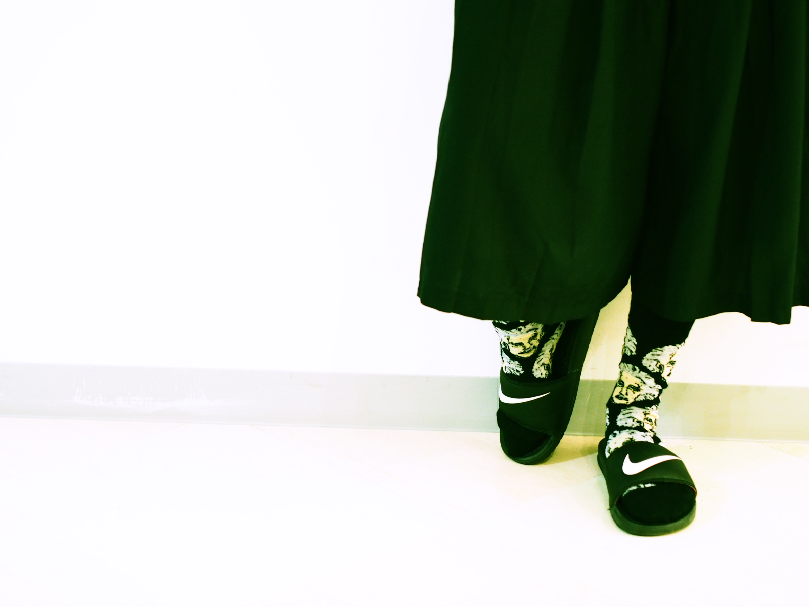 NIKEのサンダルにアインシュタイン柄のソックスで