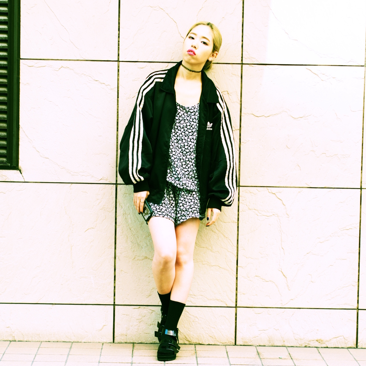 【今年の気分は黒のadidas!ストリートを感じるスポーツmixなootd】