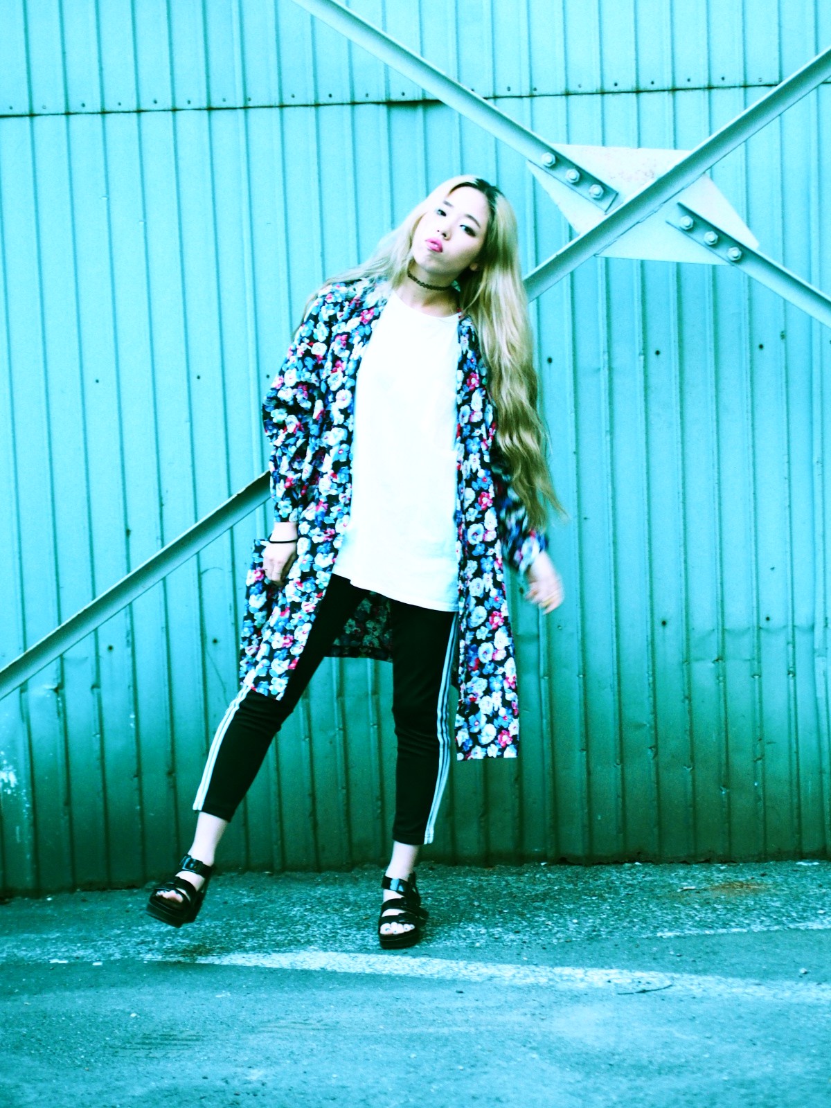 【Bigシャツ×adidas skinnyで、シルエット重視のスポーツMIXスタイル】