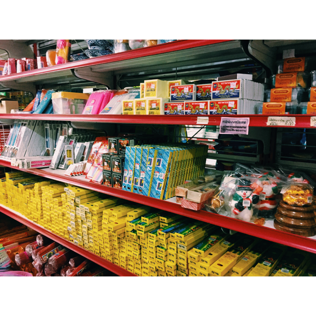 スーパーには、お祈りグッズや袈裟(オレンジ色)も売っていて