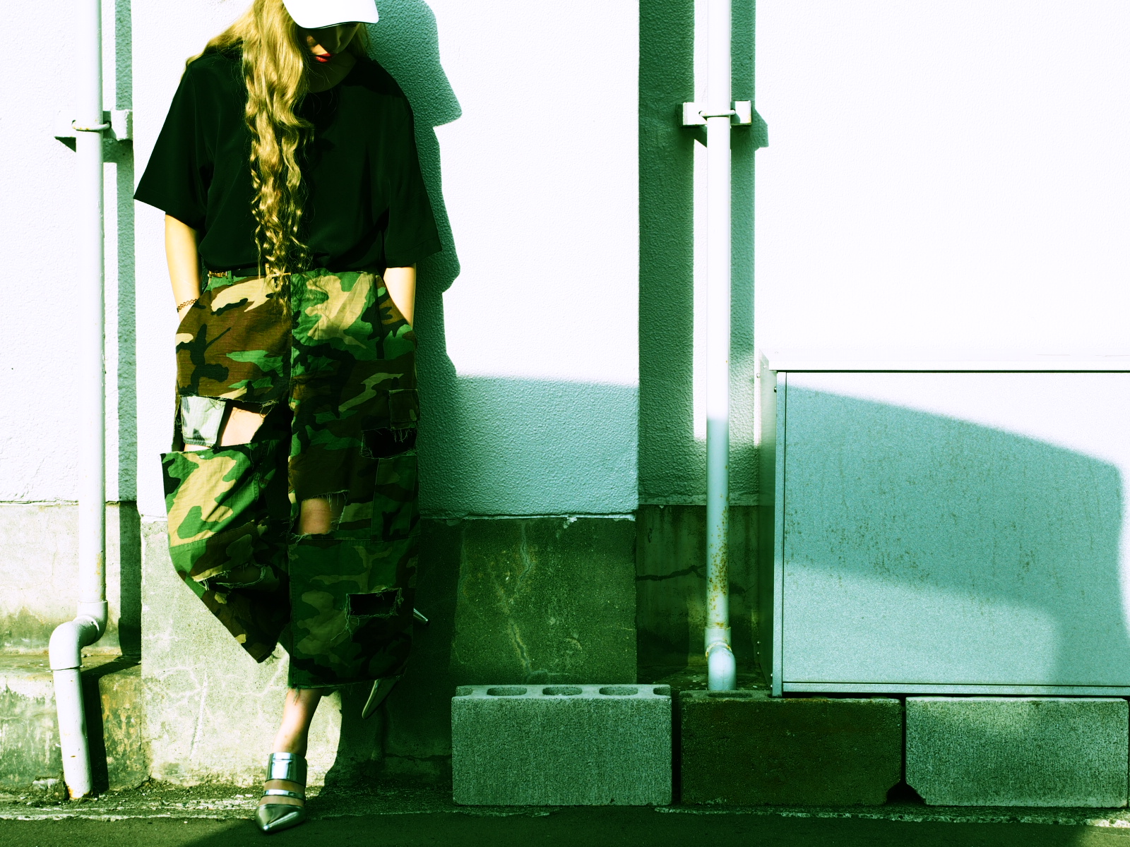 【ミリタリーのボトムスで柄を取り入れたスタイル】