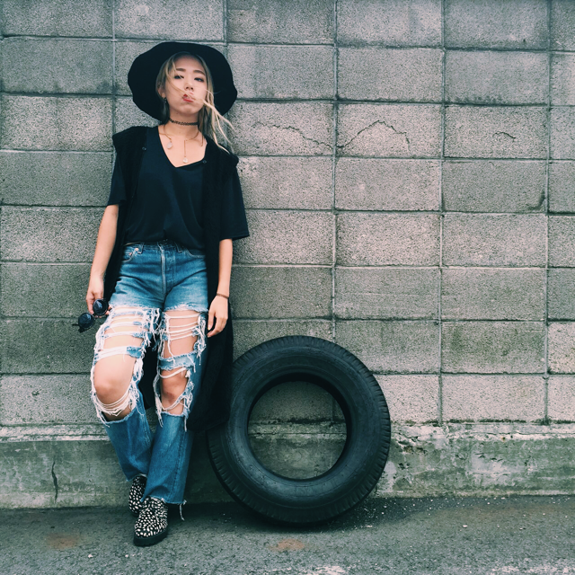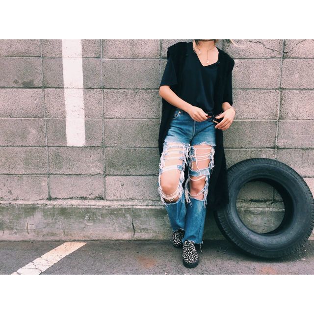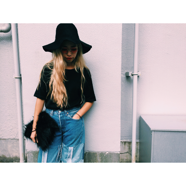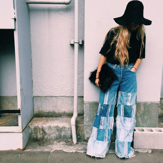 インパクト抜群の古着のデニムで合わせたスタイル